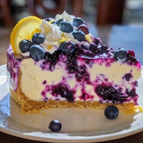 Mit frischen Blaubeeren, Sahnetuffs, Zitronenscheiben und Zitronenzesten dekorieren.