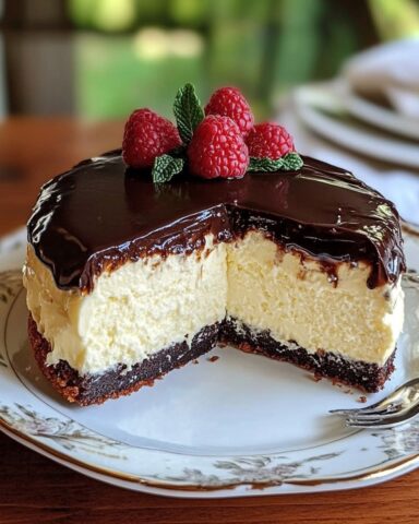 🍫 Ganache darübergießen und an den Seiten heruntertropfen lassen. Vor dem Anschneiden kühl stellen.