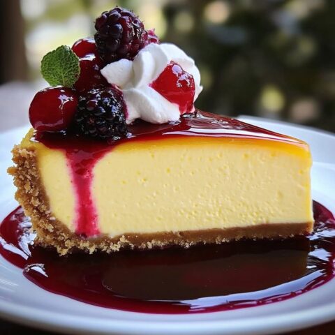 Die Erdbeersauce über den abgekühlten Käsekuchen gießen und servieren.