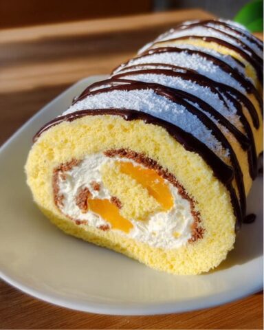 Füll die Rolle nach Wunsch (z. B. mit Marmelade, Sahne oder Crème) und roll sie erneut auf. Viel Spaß beim Füllen und Genießen!
