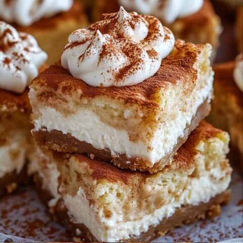Lass die Bars abkühlen, schneide sie in Stücke und garniere sie mit Zimtzucker.