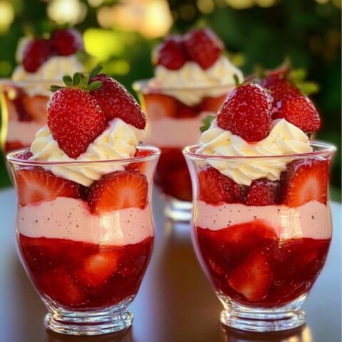 Die Erdbeeren unter die Mischung ziehen. Das Dessert in Gläser füllen und mit frischer Minze dekorieren. Lass es für eine Weile im Kühlschrank kaltstellen und genieß diese leckere Kreation!