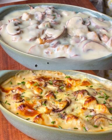 Hähnchen-Champignon-Gratin mit Béchamelsauce