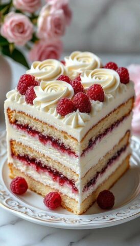 Für einen extra Himbeergeschmack zwischen den Schichten etwas Marmelade unter die Buttercreme rühren.