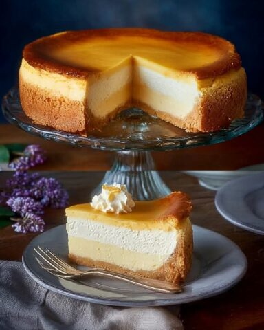 Käsekuchen mit Vanillepudding-Schicht