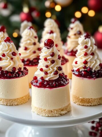 Etwas Beerenkompott auf jeden Cheesecake geben – unter die Tanne.