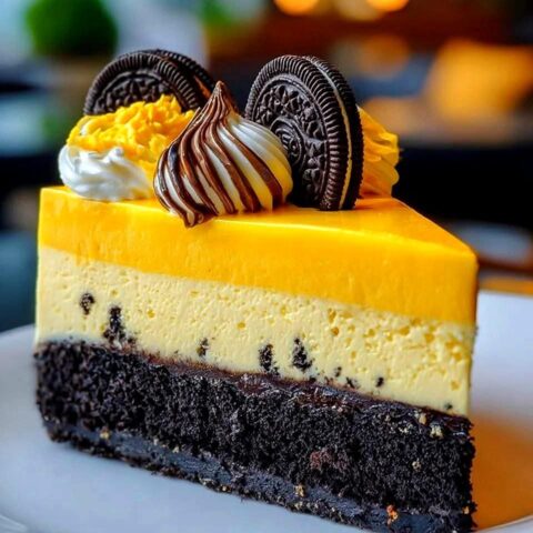 💛 Ergebnis: Ein köstlicher Käsekuchen, der mit seiner zarten Textur, dem leichten Vanillearoma und der perfekten Oreo-Note sowohl optisch als auch geschmacklich überzeugt!