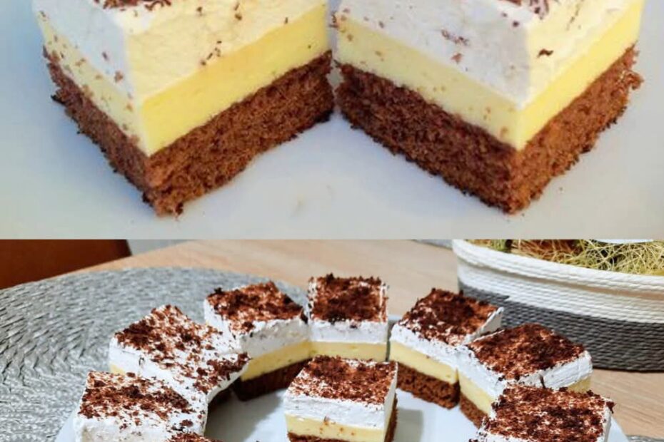 Zutaten: Für den Teig:5 Eier50 g Puderzucker5 EL Wasser200 g Zucker1 EL Kakaopulver1/2 Pck. Backpulver160 g Mehl Für die Creme:500 ml Milch4 EL Mehl5 Eigelb1 Pck. Vanillezucker100 g Puderzucker250 g Butter Für das Baiser:5 Eiweiß200… Vanille-Baiser-Kuchen