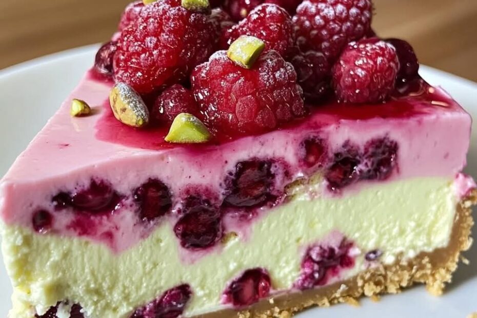 Zutaten: 🍪 350 ml Graham-Cracker-Brösel🧈 80 ml geschmolzene Butter🧀 700 g Frischkäse, weich🍭 250 ml Zucker🥚 3 Eier 🌿 1 TL Vanilleextrakt🥝 80 ml Pistazienpaste🍓 250 ml frische Himbeeren🍭 80 ml Zucker (für das Himbeer-Topping)🍓… Pistazien-Himbeer-Käsekuchen