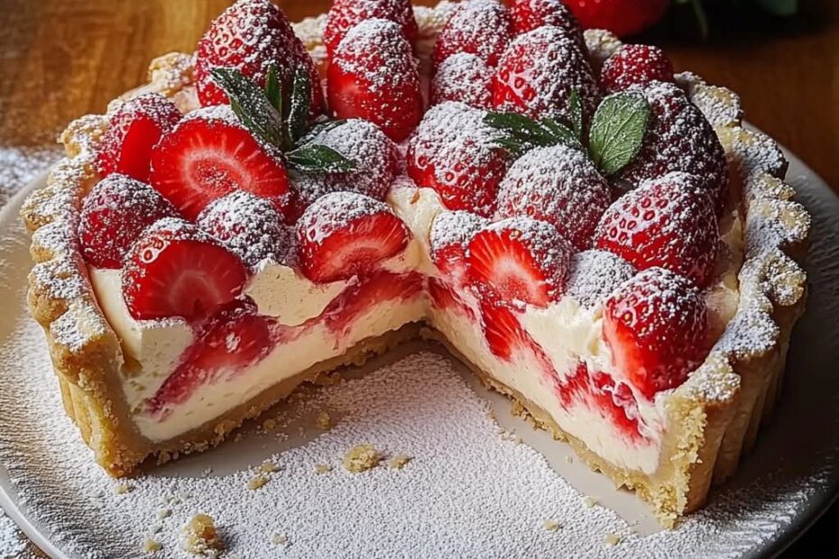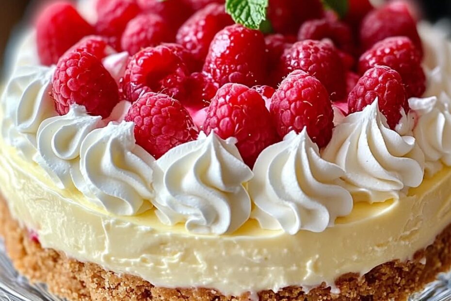 Kühlschrank-Käsekuchen mit Himbeeren und Sahne
