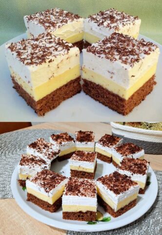 1. Erst mal Mehl, Back- und Kakaopulver in einer Schüssel vermischen, und in einer anderen Schüssel Eier, Zucker und Puderzucker zu einem steifen Schaum schlagen. Nun Wasser hinzufügen und zum Schluss die Mehl-Mischung unterheben.