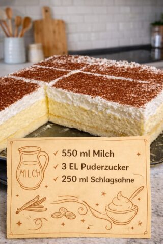 Vor dem Servieren mit Kakaopulver oder Zimt bestäuben.
