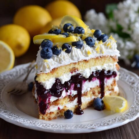 Vor dem Anschneiden mit frischen Blaubeeren, Zitronenschale oder etwas Puderzucker garnieren.
